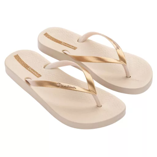 Az Ipanema Anatomic Connect II papucs homokszínű bézs — összekapcsolt pántos, anatómiai talpbetétes flip-flop. Anatómiai talpa a lábat természetes pozícióban tartja egész nap. Strandtól a városig sokoldalú és kényelmes választás.