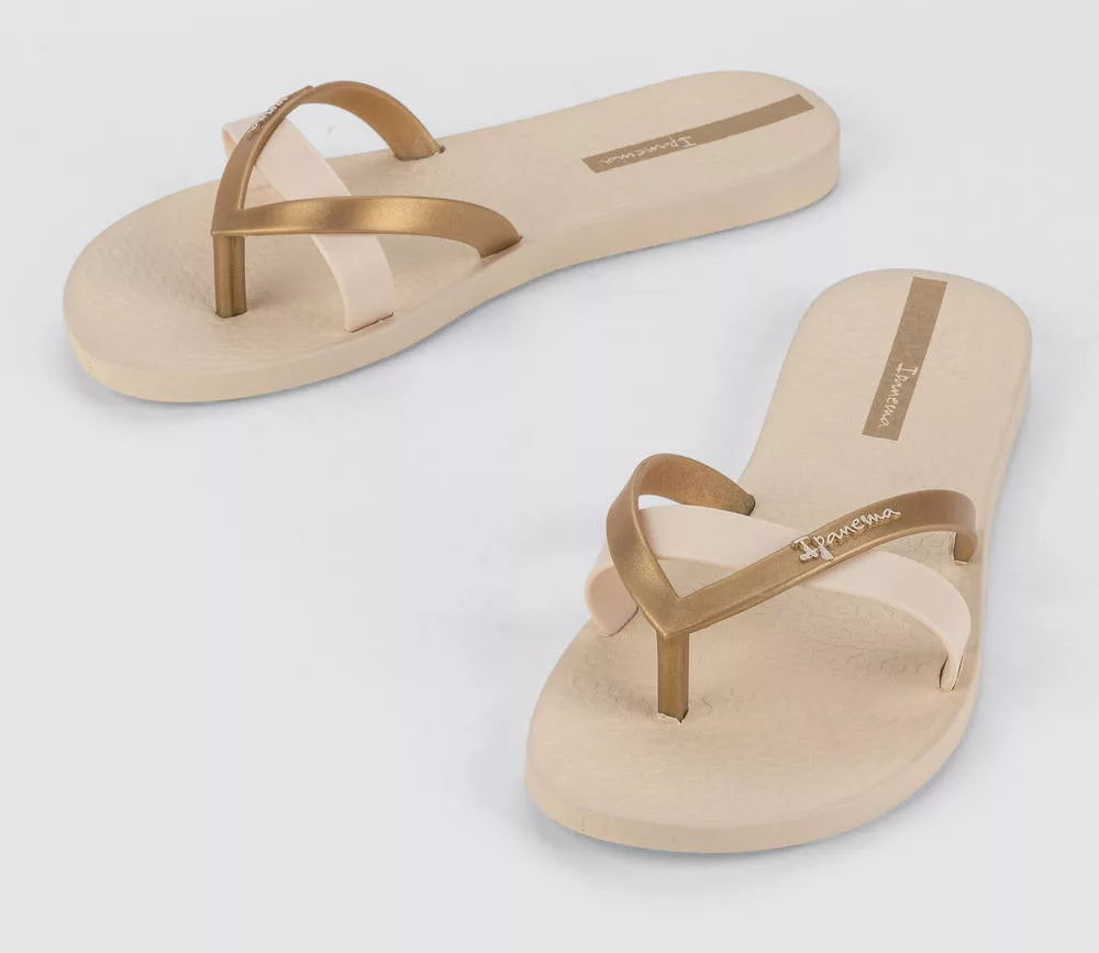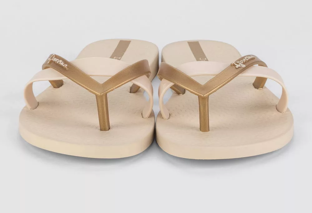 Az Ipanema Kirei bézs papucs az a kísérő, amelyet naponta felveszel és csak este veszed le — annyira kényelmes és annyira jó benne lenni. A vékony arany/bronz cross-pántok finoman emelik ki a lábfejedet a legegyszerűbb bézs tónusban is, a japánul 'szépséget' jelentő Kirei névhez híven. Ha a minimalista elegancia papucsot keres, keresése itt véget ér.