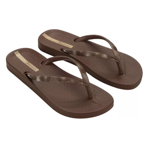 Az Ipanema Mesh IX papucs meleg barna — áttört, hálós mintájú pánttal díszített flip-flop. Hálós pántja légies, nyári megjelenést kölcsönöz. Strandhoz és nyári sétákhoz tökéletes választás.