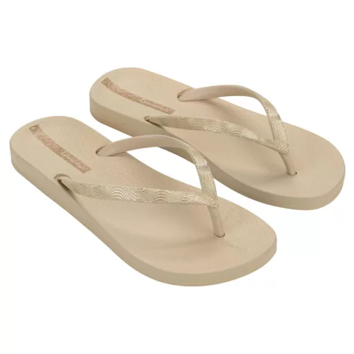 Az Ipanema Mesh IX papucs homokszínű bézs — áttört, hálós mintájú pánttal díszített flip-flop. Hálós pántja légies, nyári megjelenést kölcsönöz. Strandhoz és nyári sétákhoz tökéletes választás.
